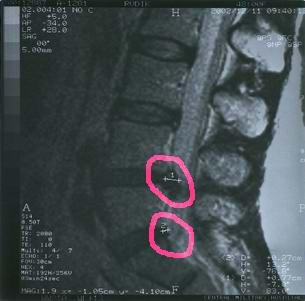 Пример2: В июне 2003 года проведено лечение больной с 5-ью (!) грыжами дисками